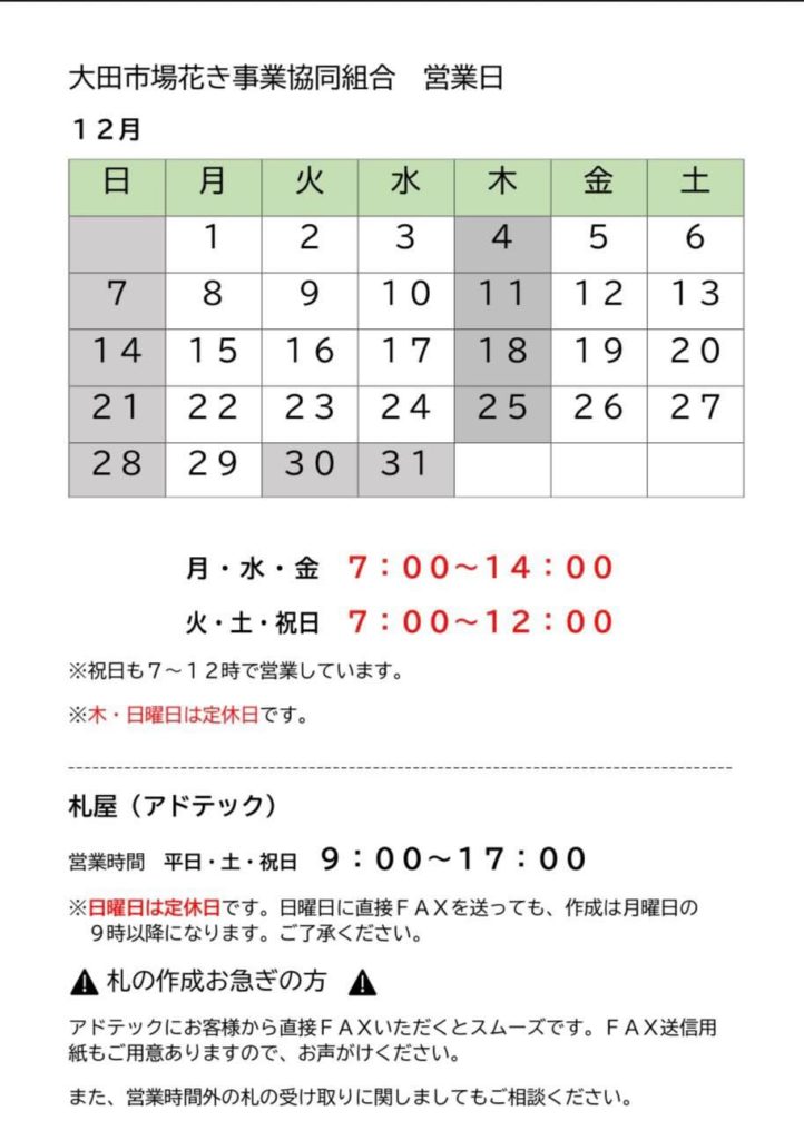 12月の営業日 Business days for December 2025